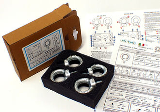 The eye bolts are protected by a shock absorbing pad and can be seen from outside the box; each pack contains the mandatory instructions for use and the 3.1 EN 10204 certificate relative to each production lot.
