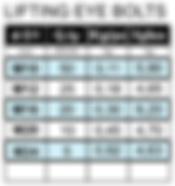 The pack contains the type and number of eye bolts as outlined in the table below: