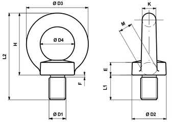 Questi golfari maschi con filettature speciali non sono previsti nella tabella DIN 580:2018 quindi non possono essere commercializzati come DIN 580:2018.
