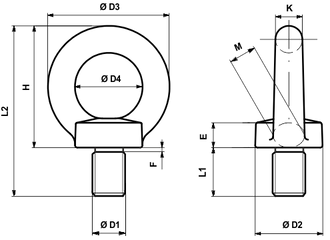Questi golfari maschi con filettature speciali non sono previsti nella tabella DIN 580:2018 quindi non possono essere commercializzati come DIN 580:2018.