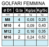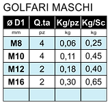 La confezione contiene il tipo e il numero di golfari riportati nella tabella seguente: