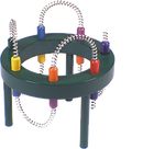 2 Riempire di acqua una delle 8 bottiglie di vetro che trovate nella confezione. Posizionarla esattamente nel centro dell’anello di colore verde. In ambiente esterno, per potenziare l’ampiezza del segnale fino ad un raggio di 50 metri riempire le restanti 7 bottiglie di acqua e posizionarle intorno all’anello ad una distanza di circa 4-5 centimetri dal bordo dell’anello. Posizionare le 7 bottiglie dove il conduttore di alluminio non passa nell’anello cioè a metà tra un cilindretto colorato e l’altro.