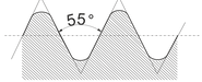 Whitworth threading is measured in inches (1"=25,4mm), and is characterised by a 55° angle for each crest and each groove of the threading. It was created in England and used as an international standard until its progressive replacement with the ISO Metric system.