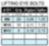 The pack contains the type and number of eye bolts as outlined in the table below:
