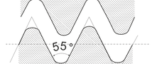 L'angolo tra due creste è pari a 55°, similmente alla filettatura