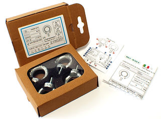 E' una scatola di piccole dimensioni (cm 13x10,5x4) con finestra trasparente che rende visibile il contenuto. Ha la possibilità, mediante l'estrazione di una linguetta, di essere anche appesa agli espositori delle ferramenta o della grande distribuzione "fai da te". I golfari sono protetti da un cuscino antiurto, sono visibili dall'esterno e in ogni confezione sono presenti le obbligatorie istruzioni di utilizzo e il certificato 3.1 EN 10204 relativo ad ogni lotto di fabbricazione.